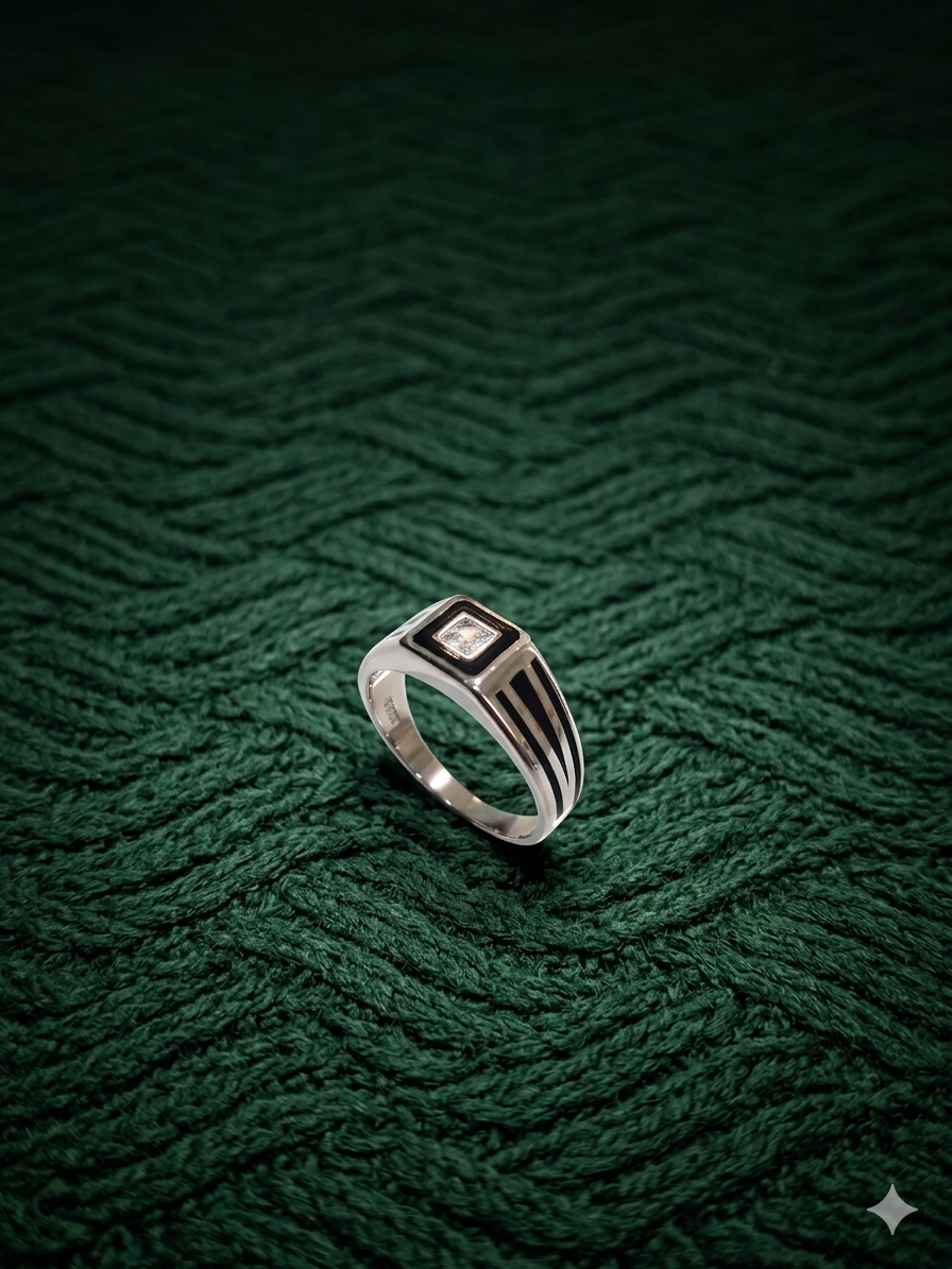 Elegant silver Finish rind with center princess cut stone Statement ring